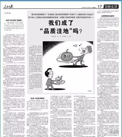 这种印象也曾被权威媒体确认,两年前,人民日报曾刊登题为“我们成了质量‘洼地’吗?”的文章,质疑国内一些行业外销内销是两个标准、两条生产线,一流产品外销、二流产品内销;一些优质商品在中国生产,却不在国内销售;同样的商品或服务,国内看到的、买到的,品质往往比国外“差点意思”的现象。