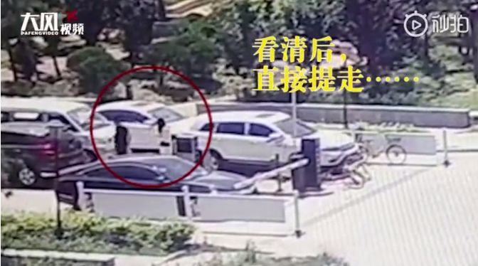 张先生赶紧到小区物业调取监控。监控显示,张先生离开面包车后,一黑衣男子和一白衣女子曾走到面包车前,男子发现面包车前的酒箱后,先是用脚踢了两下,然后弯腰拿起箱子离开。张先生说,箱子里装的就是茅台酒。