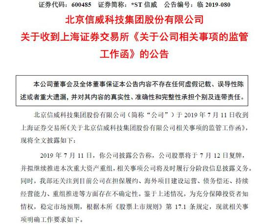 在复牌之前,上交所也下发了监管函,要求*ST信威回答几大问题: