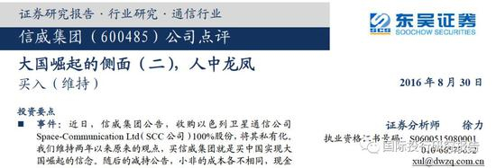 在2016年的时候,东吴证券的分析师出了这么一篇研报,《信威集团公司点评:大国崛起的侧面(二),人中龙凤》的研报,给予该股“买入”评级。