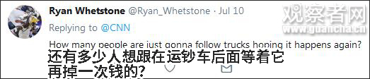 警方表示,据不完全统计,现场掉落的金额在17.5万美元左右。他们到达时人已经走光了,现场只找回了大约200美元。而且直到第二天上午,还有人特意回到现场“碰运气”。警方不得不将他们劝走,并叫喊道: