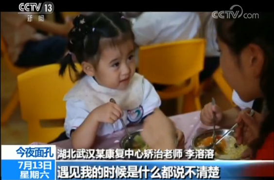 这个小朋友叫琪琪,她患有瓦登伯格综合症,造成了听力障碍。因为一直生活在无声世界里,像琪琪这样的孩子无法感知声音,所以他们很难开口说话。一位矫治老师,正在教琪琪小朋友学习说话。