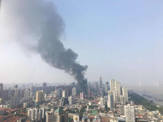 武汉一百年历史酒店失火 房顶已烧垮现场黑烟滚滚