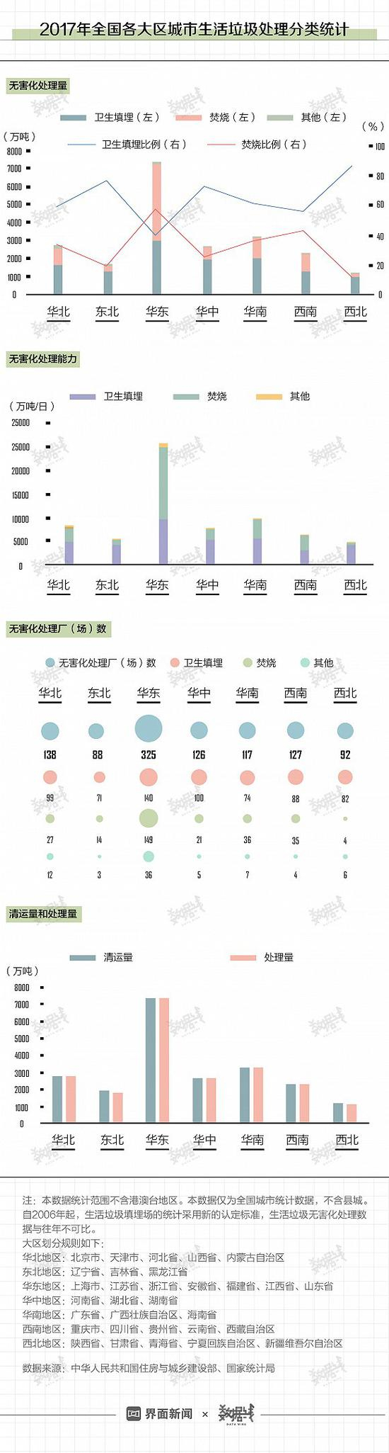 华东地区垃圾最多,烧的也最多