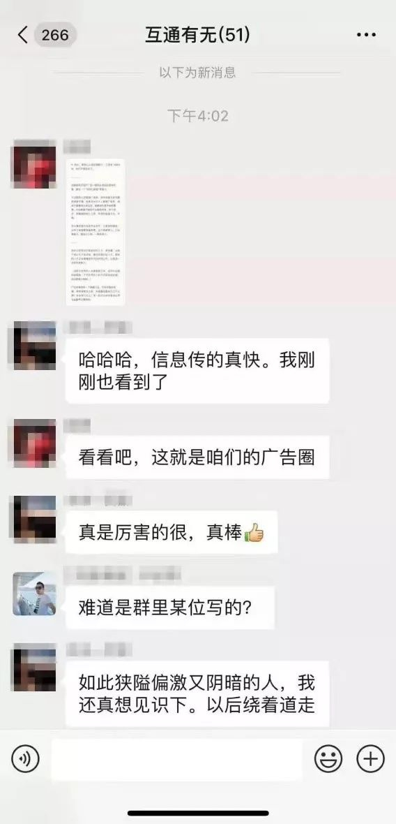 长文很快传到了“互通有无”群。