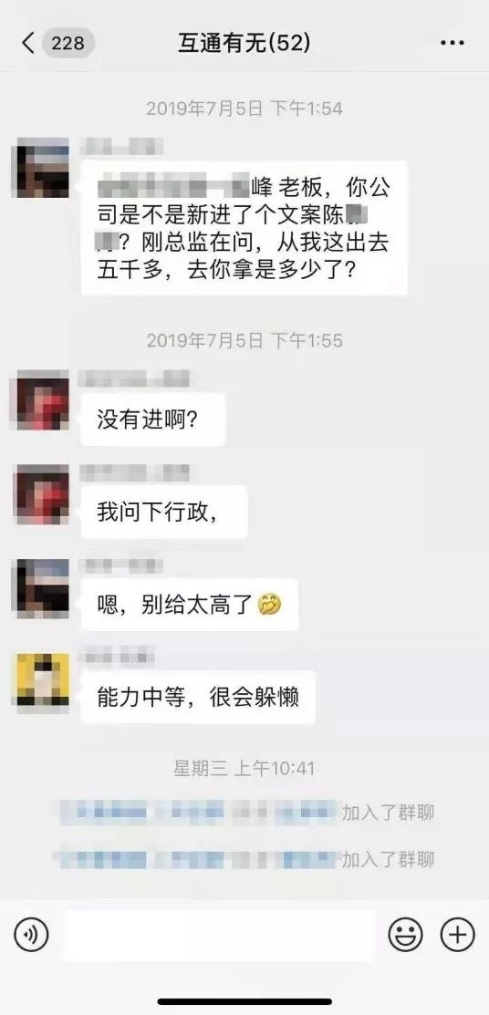 长沙广告圈HR群里吐槽员工:她能力中等 5千别多给