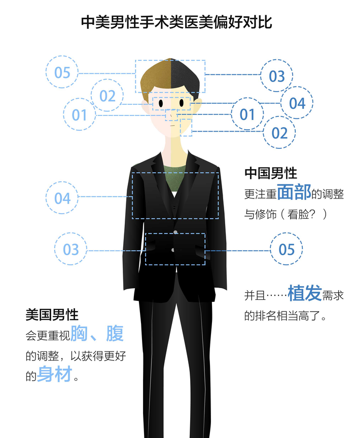 那么与美国男性相比,中国男性更想整哪里呢?