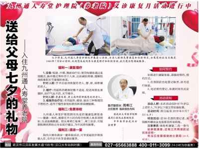 七夕将至,九州通人寿堂护理院开展爱心活动,为老人提供免费康复和体检项目,如果您的出生日期是1949年7月份以前的,欢迎您来我院参与康复理疗和体检活动,我们愿为您竭诚服务。 医疗副院长 周希江 主任医师 临床综合内科 原武汉大学医学院附属同仁医院业务副院长 中华医学会武汉分会理事 九州通人寿堂护理院(养老院)义诊康复月活动进行中 如何预约 如需进行康复体验,请提前预约,预约方式: 1、在我院前台处登记取券,依号进行体验。 2、电话预约登记,依据时间先后安排。 活动须知 活动人群:本次活动仅针对70岁以上老年人,70岁以下按正常标准收费。 活动时间:即日起至2019年8月7日(七夕) 特别活动:前50名预约登记者,来院额外赠送金龙鱼葵花籽油两瓶。 注意事项:体检和康复二选一参与 如参观满意,还有三天两夜的试住活动哟~ 凭当日发票报销的士费用(20元封顶)。 福利一:康复理疗 1、设备:短波、中频、微波治疗仪:使用电磁场通过连续模式、脉冲模式等作用于人体,达到减轻疼痛,缓解肌肉痉挛和关节挛缩的效果。 针对人群:手术后亟待恢复的老人,腰、颈、肩疼痛的老人。 2、蜡疗:用温热的蜡液轻敷不适 |