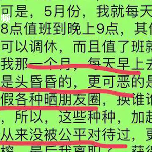去年12月底,张老师入职绵阳一培训学校。仅上了一个月班后,就不再安排他上班。“当时招了两个全职学生,我要从早上八点值班到晚上九点,每天的工资补贴就是一个学生二十块钱,另外三个老师则可以享受到休假。”张老师说,她随后向上级“文姐”提出休假,“文姐”则回应她作为管理者有自己的安排。