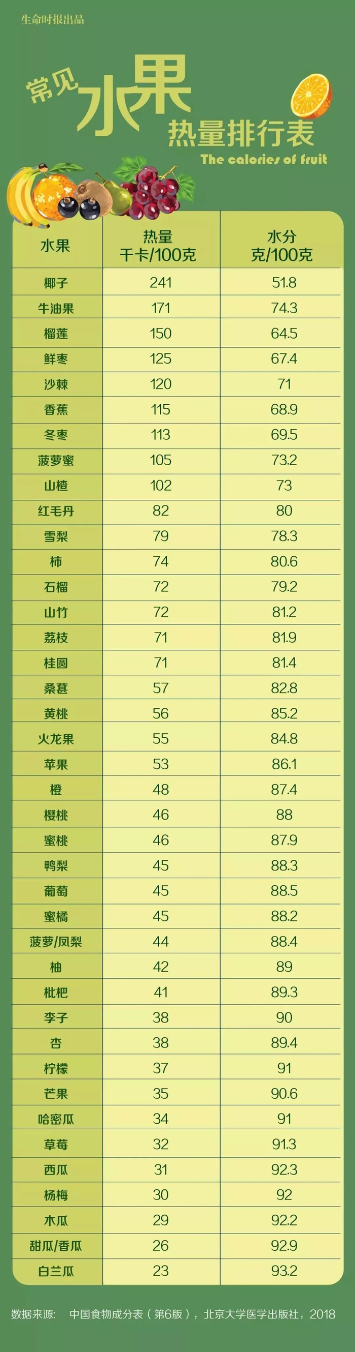 原标题:一张“水果热量排行表”,没想到这些水果让人发胖→