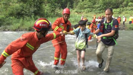 7月21日,江西靖安高湖镇西头村局部暴雨导致山洪突发,283名户外徒步驴友被困山中。