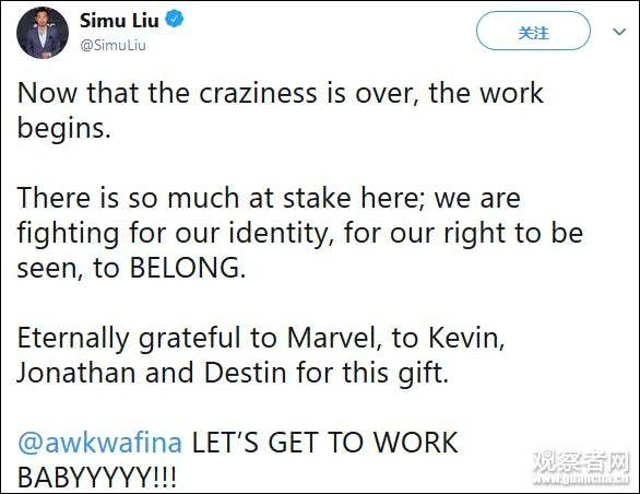 早在去年漫威宣布开发《尚气》后,他就在社交网站上毛遂自荐。