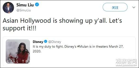 刘亦菲主演的《花木兰》官宣,他又激动了,狂发感叹号打call……