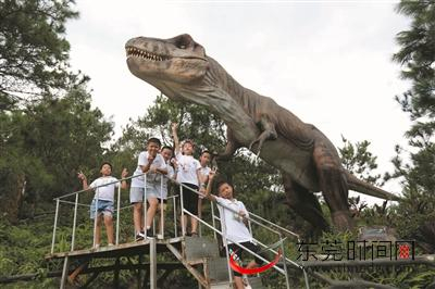 导游小姐姐先带大家来到恐龙谷。它是以三叠纪、侏罗纪、白垩纪时期恐龙为题材,采用高科技仿真技术,制作各种能动会叫仿真活体恐龙展品,分别布展于恐龙谷园内丛林中。孩子们仿佛来到了远古时代,一切充满神秘。逼真的恐龙作出的每个动作,都引得孩子们惊叫不已。