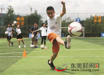 ▲“小候鸟”在松山湖足球协会学习踢足球 本版图片均由记者 陈栋 摄