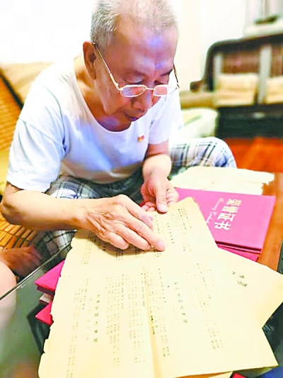 18日下午,记者前往宁康园,刚到楼洞口,一位高瘦挺拔的老人热情地迎了出来。他身穿半旧、干净的白汗衫,灰色长裤,全身上下唯一的亮色,就是胸前佩戴的闪亮党徽。他就是83岁的老党员陈细久。