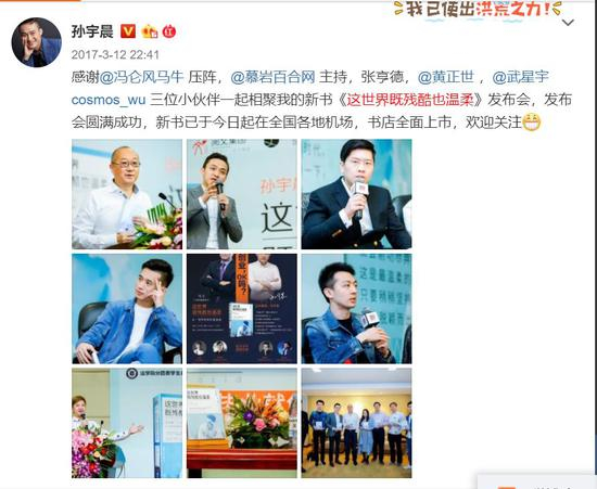 而作为万通控股的董事长、如今具有自媒体人属性的冯仑,甚至亲自出席孙宇晨新书的发布会,发布会的主持人是百合网的联合创始人慕岩。
