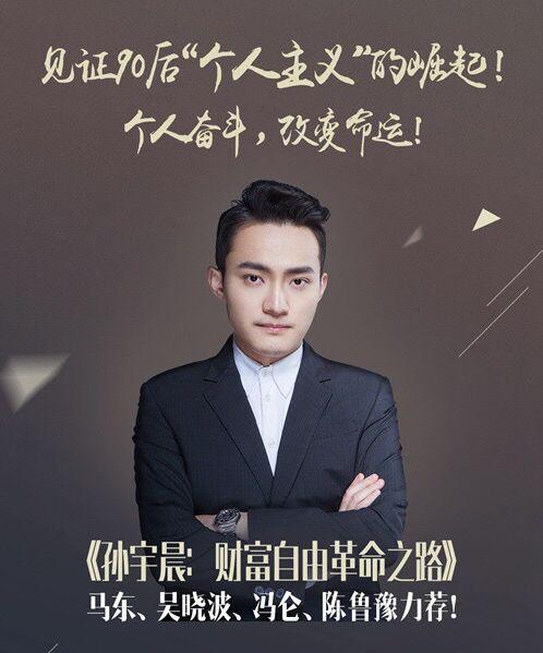 2016年,孙宇晨推出音频课程《财富自由革命之路》时,宣传中也提到:“马东、吴晓波、冯仑、陈鲁豫力荐!”