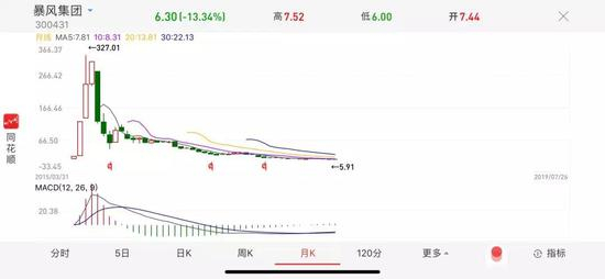 2015年,暴风达到了巅峰。当年3月,暴风集团上市,最初发行价为7.24元,但40天36个涨停。在2015年5月末,股价达到327.01元,涨了44倍,被市场称为“妖股”,市值最高的时候一度超过400亿元。