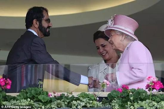 此外,英国王室也被牵扯进来。据悉,女王和两人的关系都不错,不久前皇家赛马会上女王才和穆罕默德见过面;而女王同哈雅王妃娘家的关系也不浅