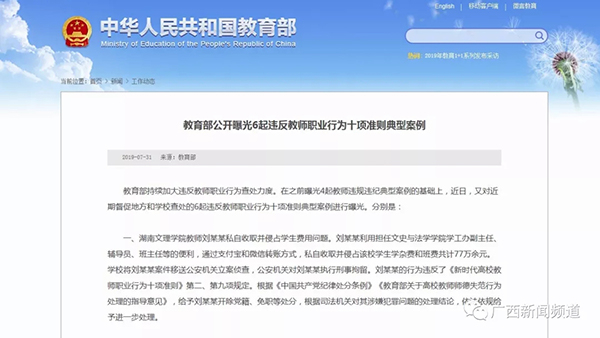 在近期教育部通报的6起案例中,有的老师索要侵占学生财物,有的学术不端,有的性骚扰学生,有的有偿补课。