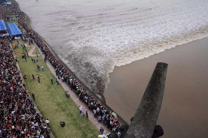 虽然还未到八月十八的观潮时节,但却没妨碍钱江潮涌的磅礴气势!而壮观的潮水每年都会吸引不少游客前来观潮。