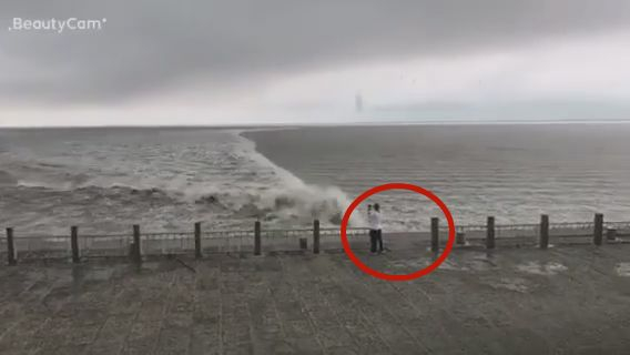 原标题:多名钱塘江观潮游客被巨浪淹没:潮水只可远观而不可近玩