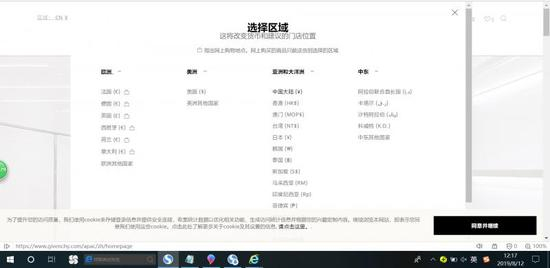 而在亚瑟士中国官网,进行地址选择时,其标题显示为“选择您所在的位置及语言”,并未提及国家一词。而在其列表中则用中文写明了中国香港与中国台湾。不过12日上午,北青报记者再次进入亚瑟士官网的时候发现,choose your country的选择项目已经被取消,官网上也没有了地址选择这一项。