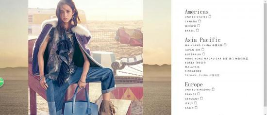 蔻驰T恤与官网将香港、澳门和台湾列为国家