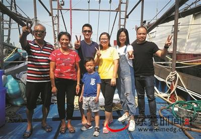 ▲粤东莞渔61018号渔船船长张志强和家人合影