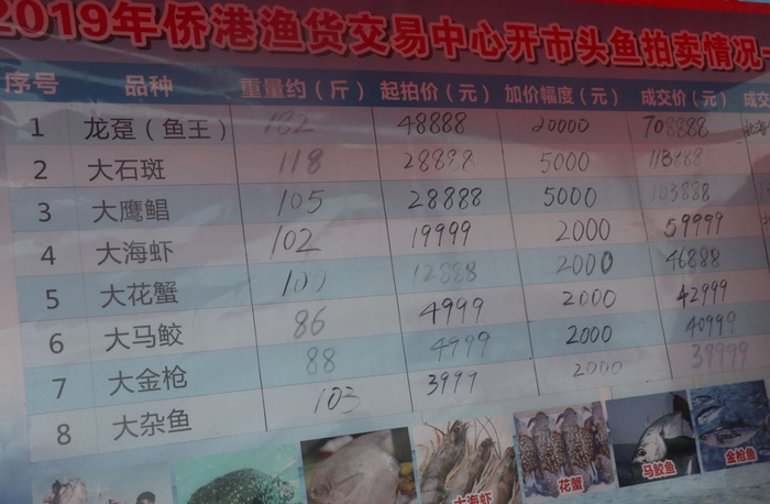 北海“鱼王”拍出708888元高价 将近4千元/斤(图)