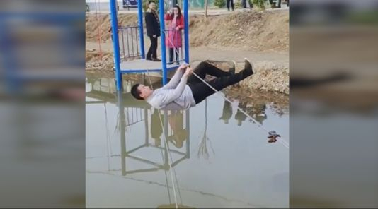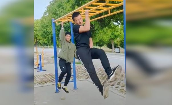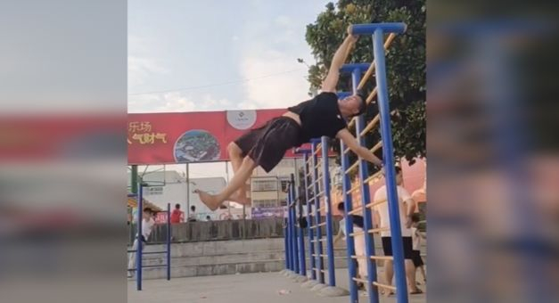 中国小伙练就“单杠漫步” 海外网友:这是要破世界纪录!