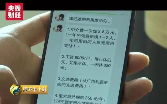 介绍人徐小姐说,他们公司已经做中介近十年,利润很高,中介费是3.5万元,而保姆的工资是8000元。