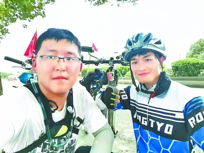 杨泓煜骑行到嘉兴时,碰到一个从北京往广西骑行的大三学长 |