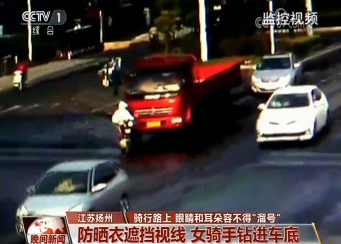 电动车驾驶员 小何:防晒衣,完全遮住我的视线,我碰到卡车的时候,才知道那是个卡车。