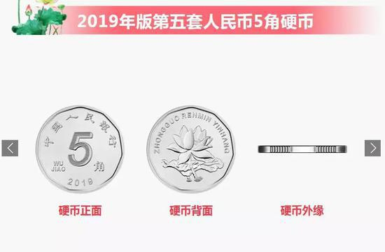 此次新版人民币发行,硬币也有许多调整, 最大的变化当属5角硬币,由原先的金黄色变为了镍白色。