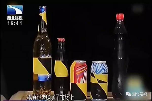 记者购买了市场上常见包装的可乐和啤酒,分别是易拉罐装的可乐、玻璃瓶装的可乐、塑料瓶装的可乐,易拉罐装的啤酒、玻璃瓶装的啤酒。