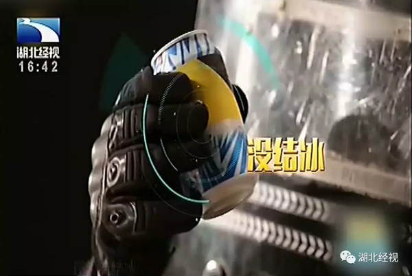 经过连续24小时冷冻后,总共有20瓶玻璃瓶装的可乐和啤酒发生爆炸。10瓶玻璃瓶装的啤酒瓶盖相继被气泡冲开,6个易拉罐装的拉环被冲开,但是塑料瓶装的可乐只是凝结成了冰,没有出现任何破损。