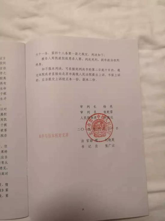 8月30日上午,北京市第一中级人民法院(以下简称“北京一中院”)一审公开宣判中科院研究生谢雕被杀案。以故意杀人罪判处被告周凯旋死刑,剥夺政治权利终身。
