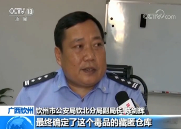 钦州市公安局钦北分局副局长 陈剑辉:侦查人员通过一个多月的时间,也动用了大量的警力和社会的资源,最终在虎门一个村子里的出租房子里面,确定了这个毒品的藏匿仓库。