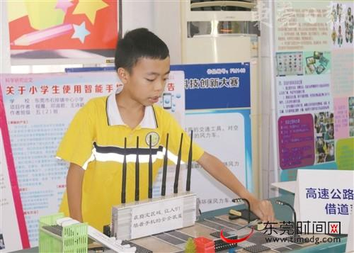 “我设计的智能灯具,最大的特点就是可声控调节亮度和角度,对于学生看书能够保护视力,避免过度疲劳。”今年升五年级的石排镇中心小学学生吴宇航向记者介绍他的“作品”。