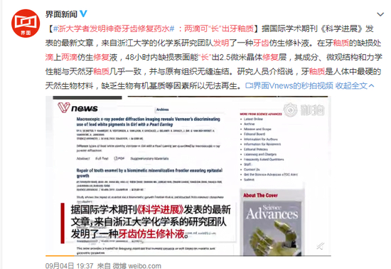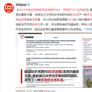 原标题:#浙大学者发明神奇牙齿修复药水# :两滴可“长”出牙釉质