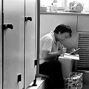 王玉兰:完全没有想到。我每天打扫完卫生之后会出汗,卫生间的那个角落是我平时休息的地方,如果不写写字,一般也就是玩玩手机什么的,我想着那样的话有点儿浪费时间,还不如写写字,看到好的文章和句子就抄下来,这样心也静了,汗也消了,还能学习到一些东西,一举多得。结果没想到就被一名老师拍下来发到网上了,受到别人关注还挺意外的。
