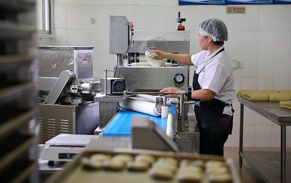 目前,机器生产出的月饼口感较硬,水分、油性含量较低,还达不到人工制作的品质。