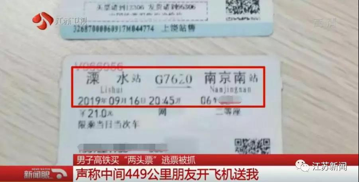 这“案子”并不难破。浙江衢州至南京溧水的铁路里程为449公里,而男子手持的车票G2336次在浙江衢州下车时间为18点01分,另一张G7620次的车票在南京溧水上车时间为20点43分。