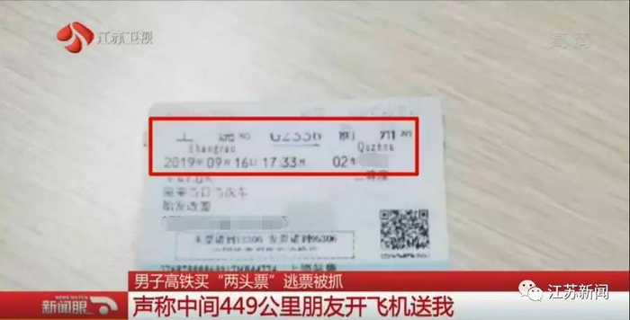 男子坐高铁买两头票 称中间449公里是乘朋友飞机