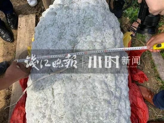 村民特意用卷尺给冬瓜量了三围,长153厘米、宽72厘米,腰围约197厘米,一上称,447.8斤,比去年的大冬瓜还重上57斤。