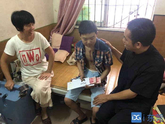 9月19日下午,慕思·东莞报业爱心基金理事长邱浩洋了解到阿科一家的境况后,特地送去2万元爱心款,并鼓励他调理好身体,将来回报父母和社会。