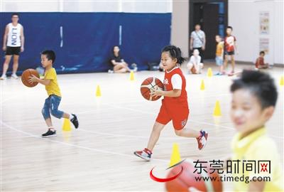 ▲小球员们学习运球技巧