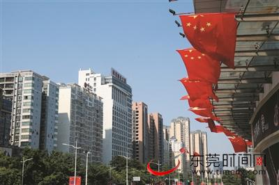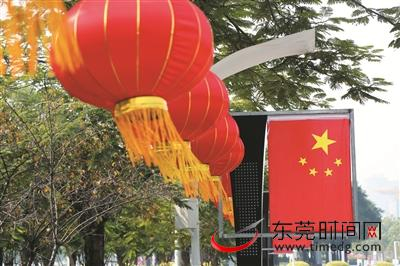 国庆临近,市民走上街头便会发现,东莞,红了!街头处处可见五星红旗飘扬,还有高挂的红色灯笼和中国结,整个城市被一抹抹“中国红”装扮得美丽而又喜庆。